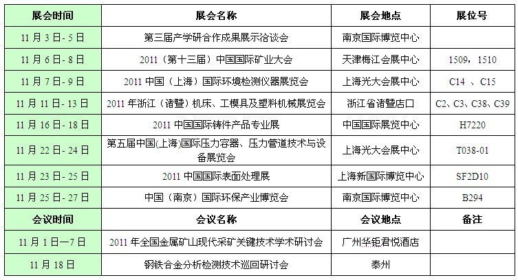 2011Äê11Ô·ÝÕ¹»á¡¢¾Û»áÔ¤¸æ