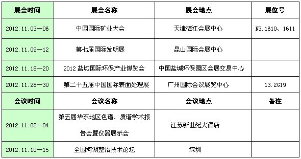 2012Äê11Ô·ÝÕ¹»á¡¢¾Û»áÔ¤¸æ