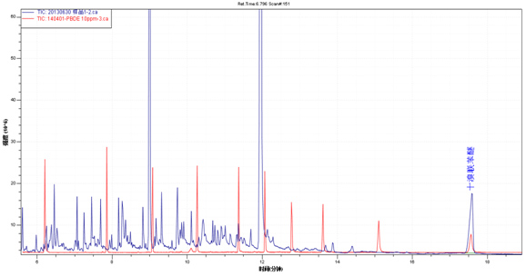 ÑùÆ·TICͼ£¨À¶É«£©Óë¶àäåÁª±½ÃÑ»ì±êTICͼ£¨ºìÉ«£©