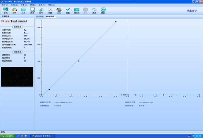 £¨AµÀÏßÐÔ·½³Ì£ºY=875.144*X-17.003£©£»£»£»£»£»£»£¨AµÀÏßÐÔÖµ£º0.99916£©¼ûͼ1
