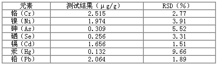 ׼ȷ³ÆÈ¡6·ÝÑ̲ÝÑùÆ·£¬£¬£¬ £¬ £¬ £¬Ô¼0.2g/·Ý£¬£¬£¬ £¬ £¬ £¬»®·Ö²â¶¨ÆäÖеÄAs ¡¢Cr ¡¢Ni¡¢Se ¡¢Cd ¡¢Hg ºÍPb£¬£¬£¬ £¬ £¬ £¬²¢Æ¾Ö¤²â¶¨Ð§¹ûÅÌËãÆäÏà¶Ô±ê×¼Îó²î(RSD)¡£¡£¡£¡£¡£Ð§¹ûÏÔʾ,Cr ¡¢Ni ¡¢As ¡¢Se ¡¢Cd ¡¢HgºÍPbµÄRSD»®·ÖΪ2.77 %¡¢3.91 %¡¢5.52 %¡¢3.31%¡¢1.51 %¡¢9.66 %ºÍ1.89 %¡£¡£¡£¡£¡£Êý¾Ý¼û±í3¡£¡£¡£¡£¡£