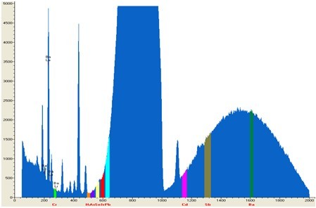 ʹÓÃEDX 9000CÒÇÆ÷¶ÔÆû³µÅä¼þ²£Á§ÑùÆ·¾ÙÐвâÊÔ£¬£¬£¬£¬£¬²âÊÔʱ¼ä1Ã룬£¬£¬£¬£¬Æä²âÊÔÆ×ͼºÍÊý¾ÝÈçÏÂͼ£º